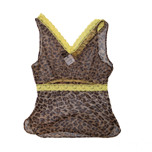 Vintage Dolce & Gabbana Leopard Mesh Lace Top w Yellow Trim – Size IT 42 / US