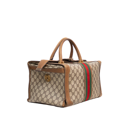 Vintage Gucci GG Plus Web Vanity Train Case Bag with Leather Trim