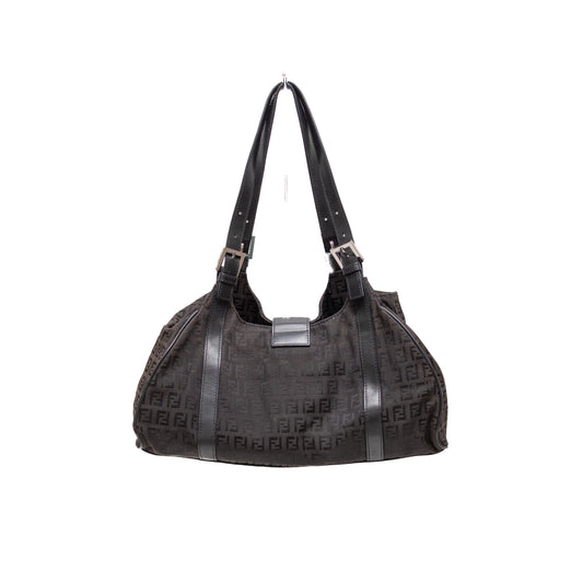 Fendi Zucchino Monogram Tote Bag with Black Leather Trim
