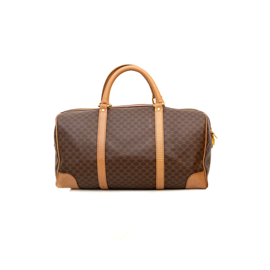 Vintage Celine Macadam Coated Canvas Boston Travel Bag with Padlock & Key – M14