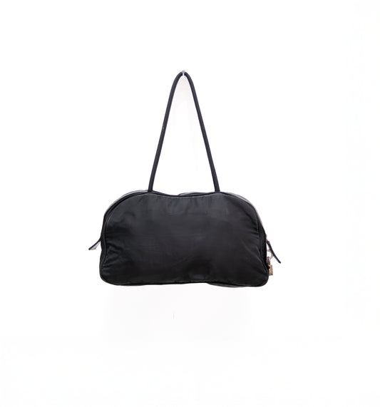 Vintage Prada Tessuto Black Nylon Front Zipper Pocket Mini Boston Bag