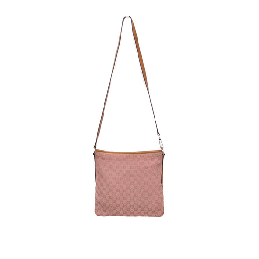 Gucci GG Monogram Pink Canvas Leather Trim Crossbody Bag - Style 113018 1956