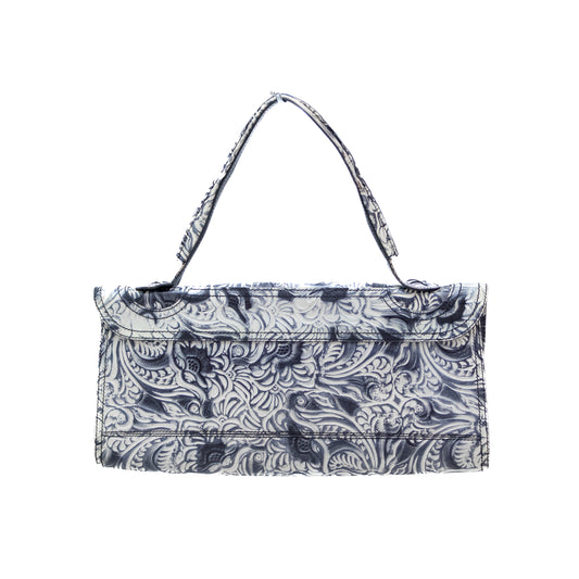 RARE 90s Fendi Embossed Floral Leather Baguette Clutch Bag