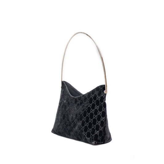 Rare 1997 Gucci by Tom Ford Runway Velvet Shoulder Bag – Chrome Handle – Monogram Guccissima