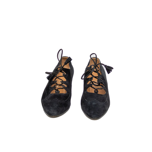 • Hermès Paris Black Suede Lace-Up Heels – Size 5.5 US / 3 UK / 35.5 EU