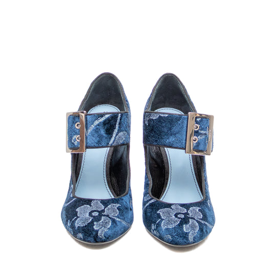 Lanvin Paris Blue Velvet “Sierra” Mary Jane Heels – Size EU 37 / US 7