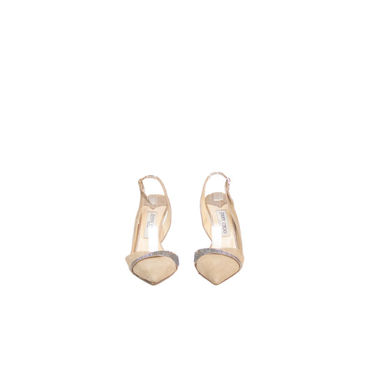 Jimmy Choo Gold Glitter Slingback Heels with Crystal Trim – EU 39 (US 9 / UK 6.5)