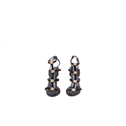 • Versace Medusa Black Suede Strappy High Heel Sandals – EU 37.5 (US 7.5 / UK 5)