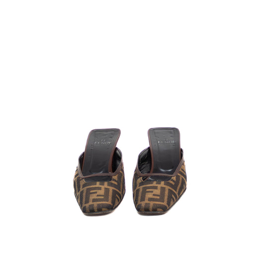 Fendi Vintage Zucca Monogram Slingback Kitten Heel Mules - Size 8.5 M (US 8.5 / UK 6 / EU 39)