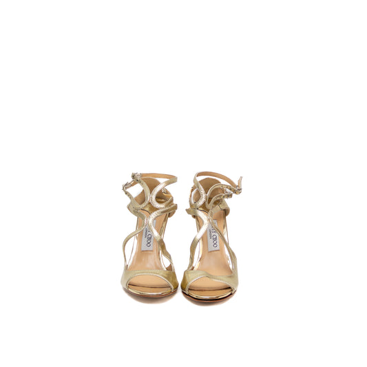 Jimmy Choo Gold Metallic Strappy Leather Sandals – Size 37 (US 7 / UK 4.5 / EU 37)