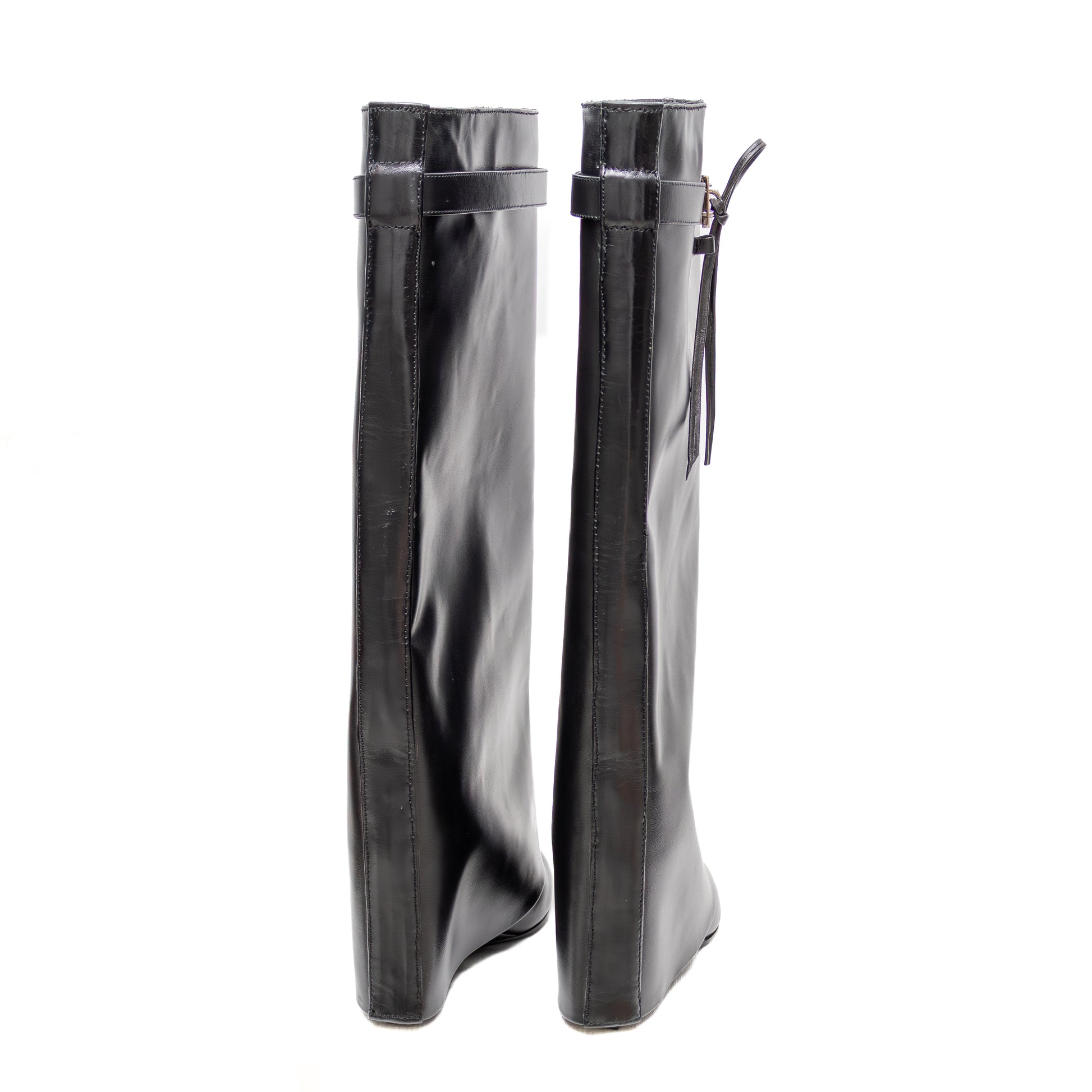 Givenchy Shark Lock Leather Wedge Boots – Black – Size 38 (Fits Like 37–37.5)