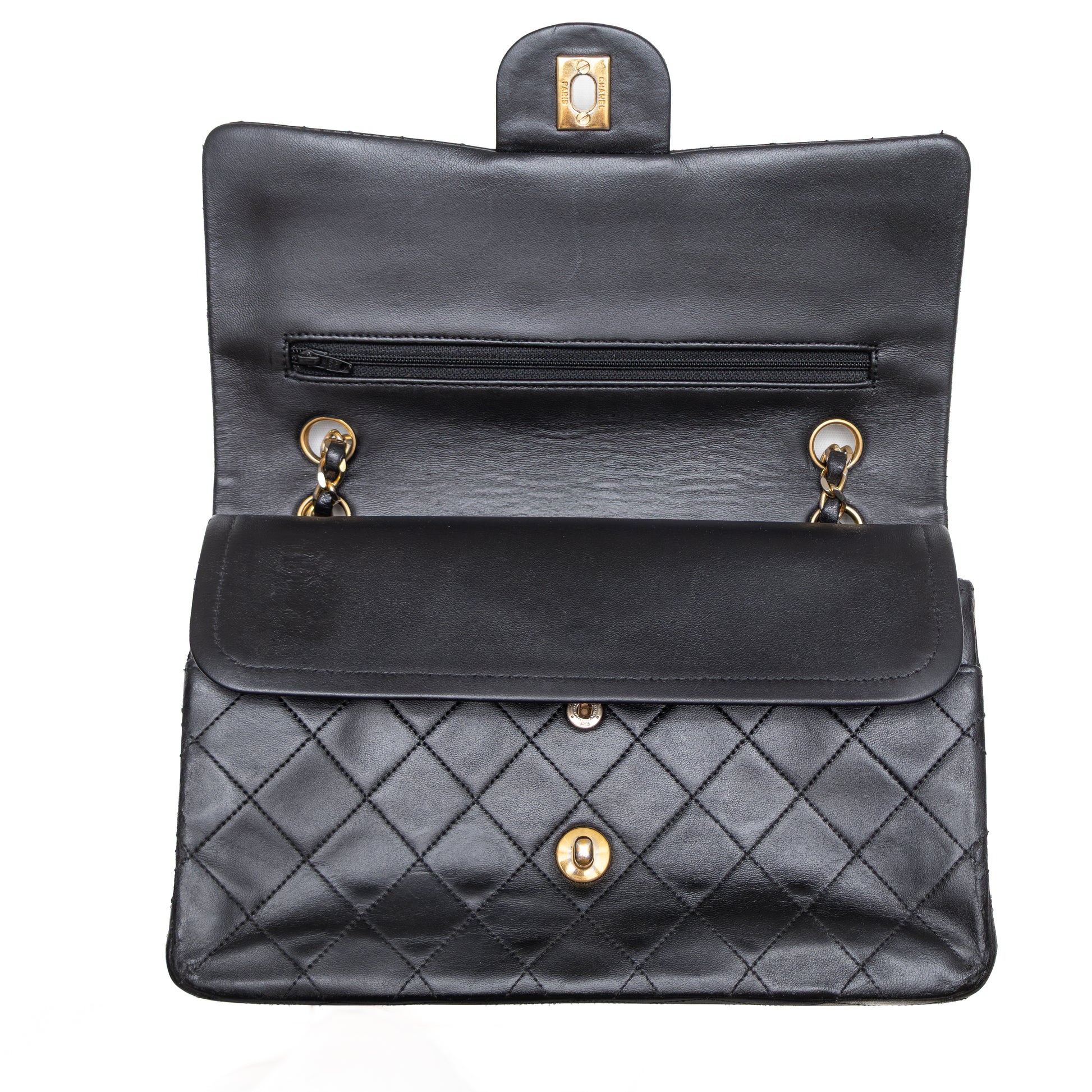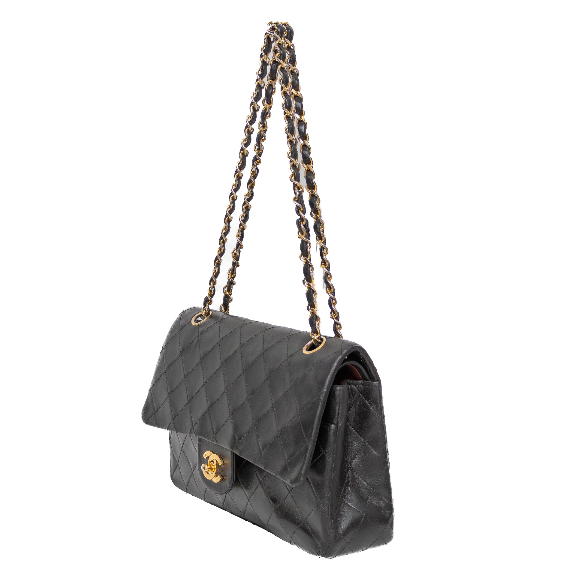 Vintage Chanel Classic Double Flap Bag – Black Lambskin – 24K Gold Plated Hardware – Circa 1986–1988