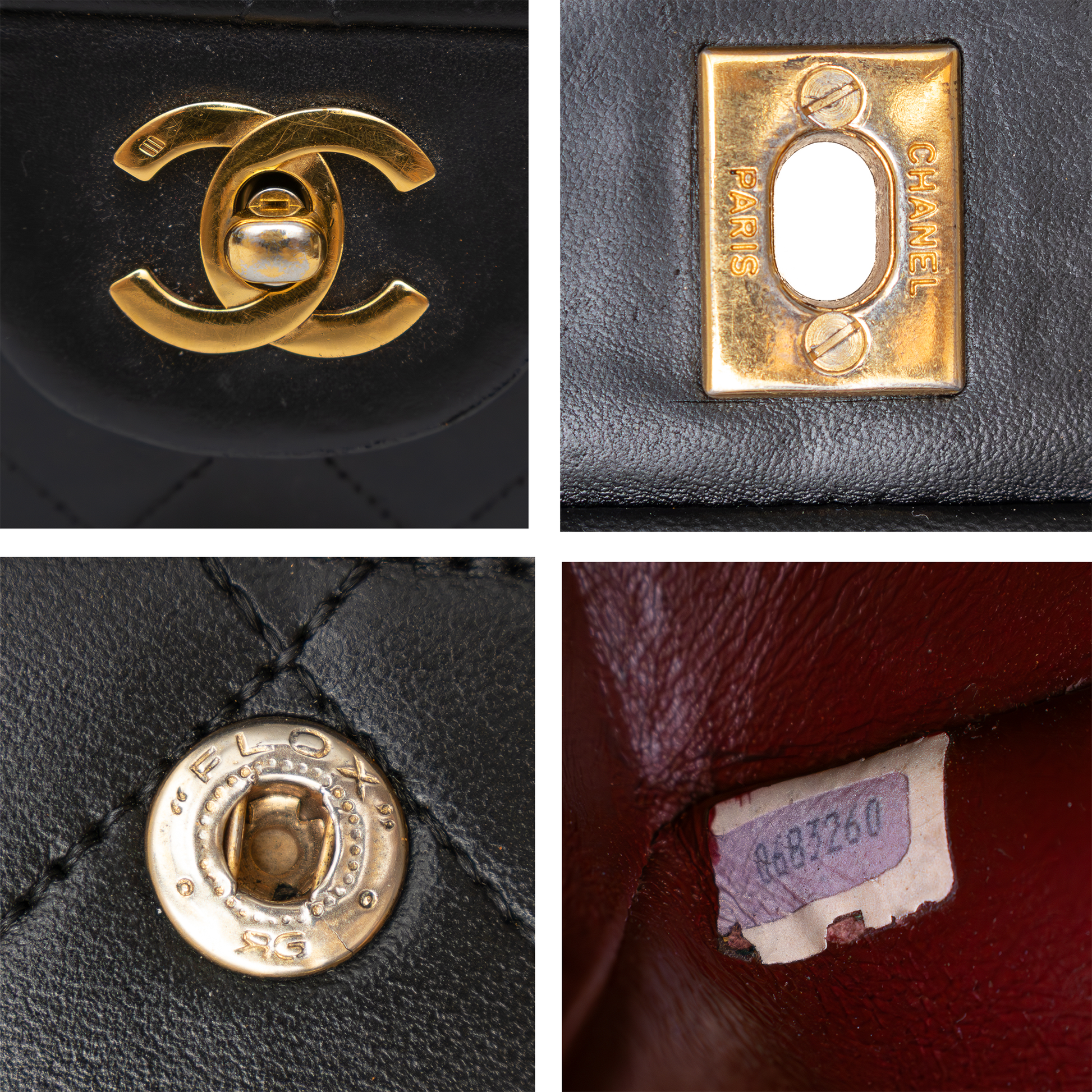 24K gold plated hardware (produced before Chanel discontinued gold plating in the early 2000s).