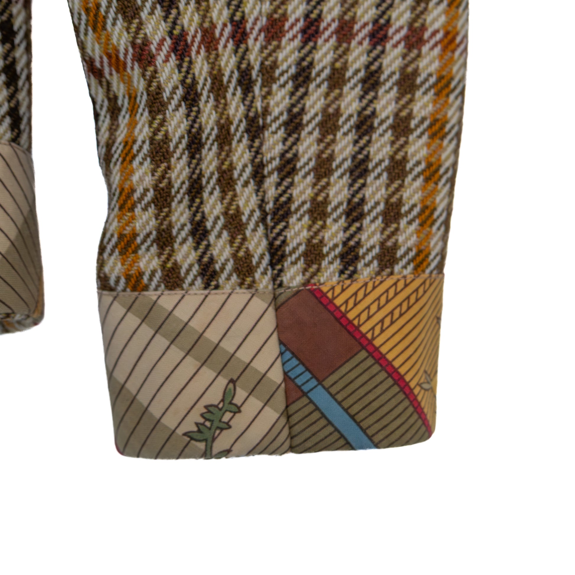 Color: Multi – brown houndstooth with floral multicolor appliqués